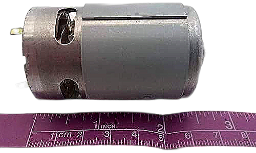 Model RS-550S 18v Shape of Motor Housing: Round Type of Motor: Carbon Brushes Construction: Anisotropic Magnet or Rare Earth Magnet Operating Voltage: ~6v - 24v No Load RPM: ~19300 No Load Current: ~1.2A Stall Torque: ~70.55oz-in (498.2mN-m) Efficiency: ~70% RPM Peak Efficiency: ~17250 Current Peak Efficiency: ~8-10A Dimensions Weight: ~7.7oz (218g) L: 2.24in (57mm) D: 1.46in (37mm) Mounting holes (2): M3 Mounting Holes: 25mm apart Shaft Diameter: 3.175mm (~1/8in) Shaft Style: "D" Shaft Length: 8.2mm Motor Body Diameter: 35mm-37mm Motor Body Length: 57mm Weight: 7.8oz Designed as a Power Tool / Drill motor and may replace motors in many 3/8in drills and other cordless outdoor tools. As well as a popular choice for DIY Electronics and Robotics, PowerWheels, Gate Openers, and More. ***PLEASE NOTE: Will not work or fit in all models, be sure to check your specific applications requirements before purchasing If your replacing a motor please be sure to verify the motor matches your dimensions and shaft length and diameter before purchasing.