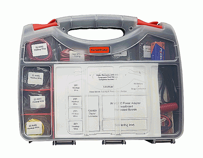 The ProTechTrader Make: Electronics Kits have been designed specifically for the 3rd Edition of Make: Electronics by Charles Platt. We worked directly with Charles Platt for our kits to complement and match his experiments, just the way he wanted. The ProTechTrader electronics kits are highly recommended by the author and are a perfect introduction for the new electronics enthusiast. Geared towards beginners, Make: Electronics 3rd Edition is the top educational book for students through professional adults wanting to learn basic electronics and circuit design.