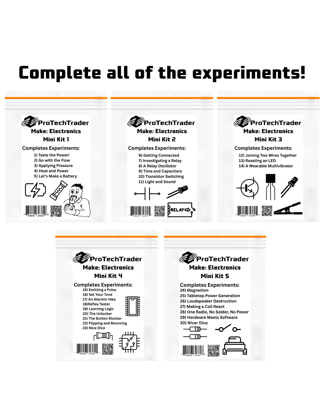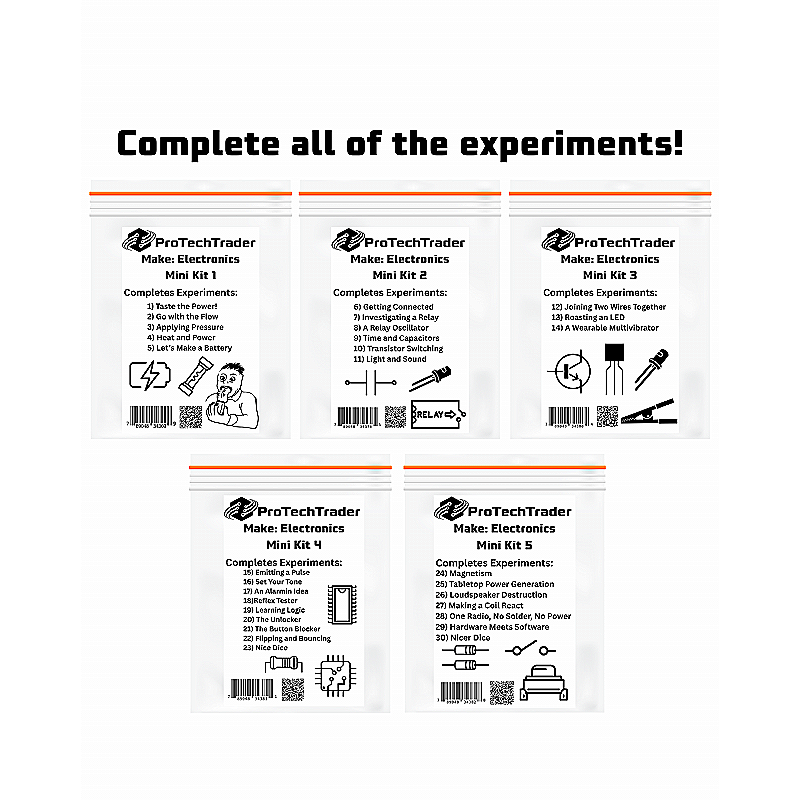 ProTechTrader 789048343699 Make: Electronics Mini Kits (3rd Ed) - Electronic Component Packs - Follow Experiments in Charles Platt s 3rd Edition