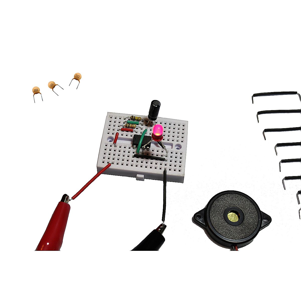 - Designed with the complete beginner in mind, the component pack allows elementary through middle school students to learn and have fun while completing entry-level electronic experiments. The pack includes all the parts needed, such as a mini solderless breadboard, miniature light bulbs, custom jumper wires, a large slide switch, a 7555 timer circuit, low-current LEDs, a low-voltage piezoelectric transducer, a phototransistor, and so much more!