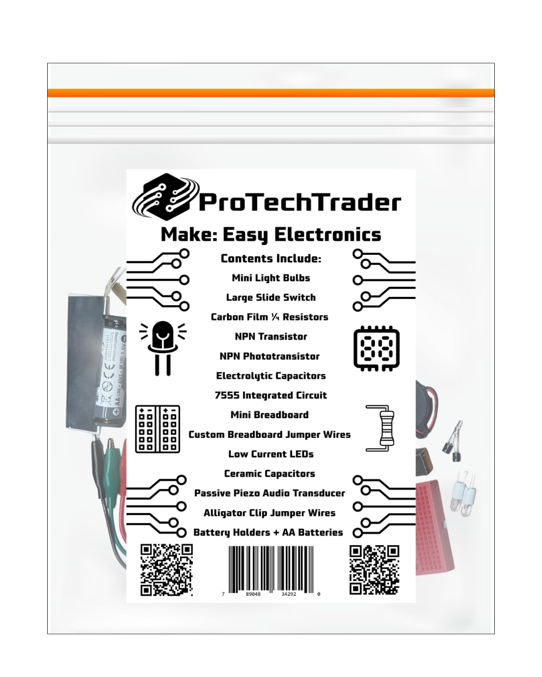 ProTechTrader Make: Easy Electronics Component Pack - Learn Basic Electronics with no Tools for Easy Electronics by Charles Platt (Book Sold Separately)