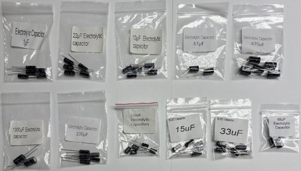 **Most Bags Contains 5 Capacitors. 47µf68µf, and 1000µf have 2 per bag**