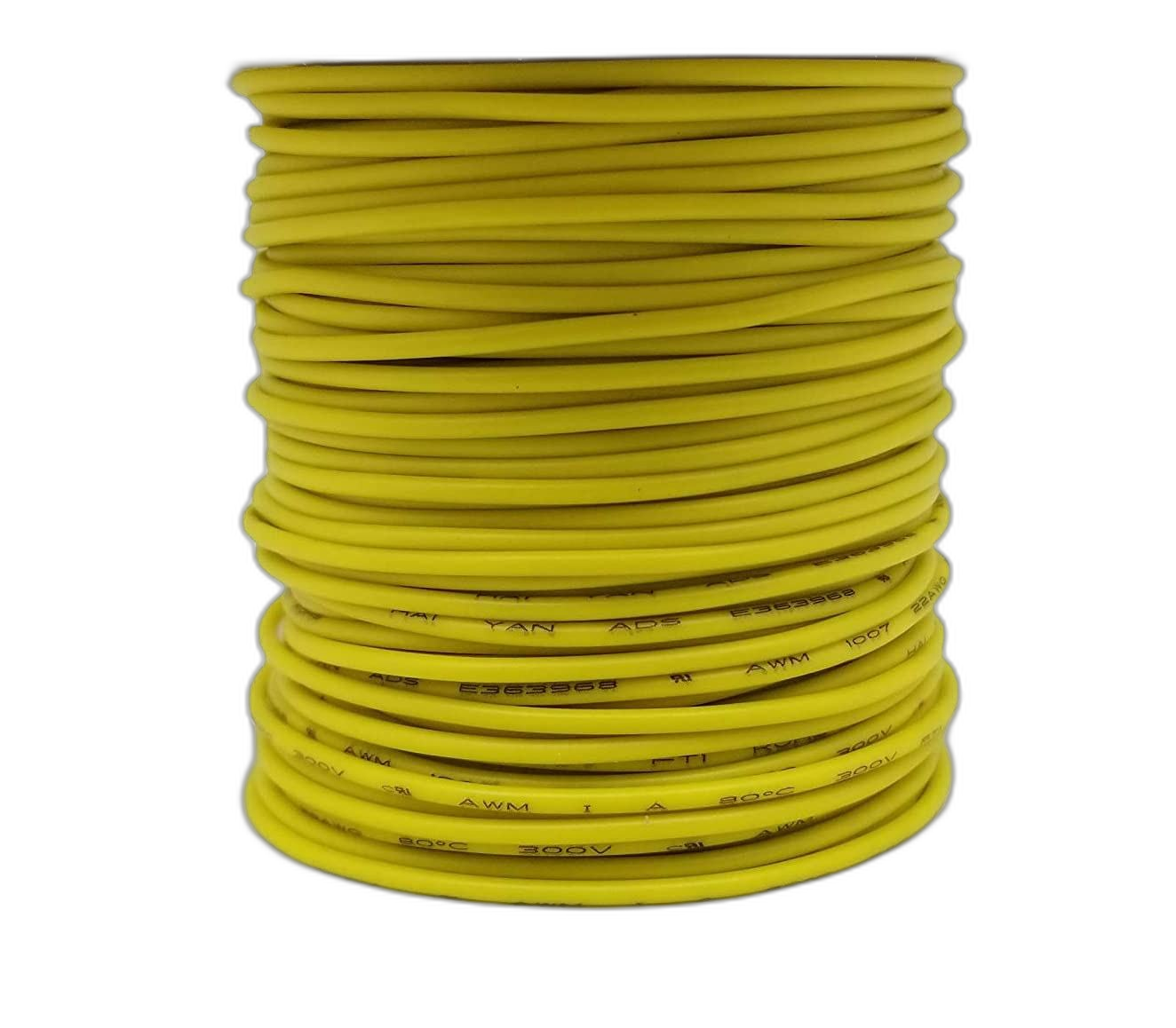 100 feet 22 AWG Solid Copper Wire 22 Gauge UL1007 Rated Yellow PVC Insulated Tinned Hook-Up Primary Power Line Cable on Plastic Spool 100' ft 22GA 22 Gauge (22ga) Solid Copper Tinned Hookup Wire for Electronics and Electrical Wiring 100ft 22 AWG Copper Hook-Up Wire with Yellow Insulation on a Plastic Spool Tinned Copper wire for easier soldering and superior corrosion resistance suitable for crimp connectors UL1007 Certified PVC Insulated Rated for 300 volts & 105°C Primary Power Wiring Perfect for DIY Electronics, Breadboards, Prototyping, Experiments, Arduino Microcontrollers, Radio, Home Theatre, Automotive, Stereo, Robotics, Appliances, and R/C Power applications.