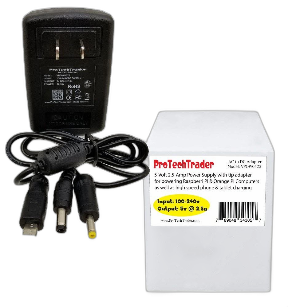 ProTechTrader 789048343057 5V 2.5A Raspberry Pi & Orange Pi Power Supply SBC Adapter Kit