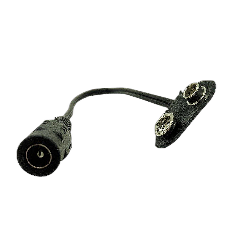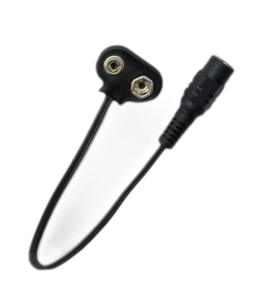 - 5.5mm Female DC Barrel Connector to 9-Volt Battery Snap Connector to be used with a 9v AC/DC adapter