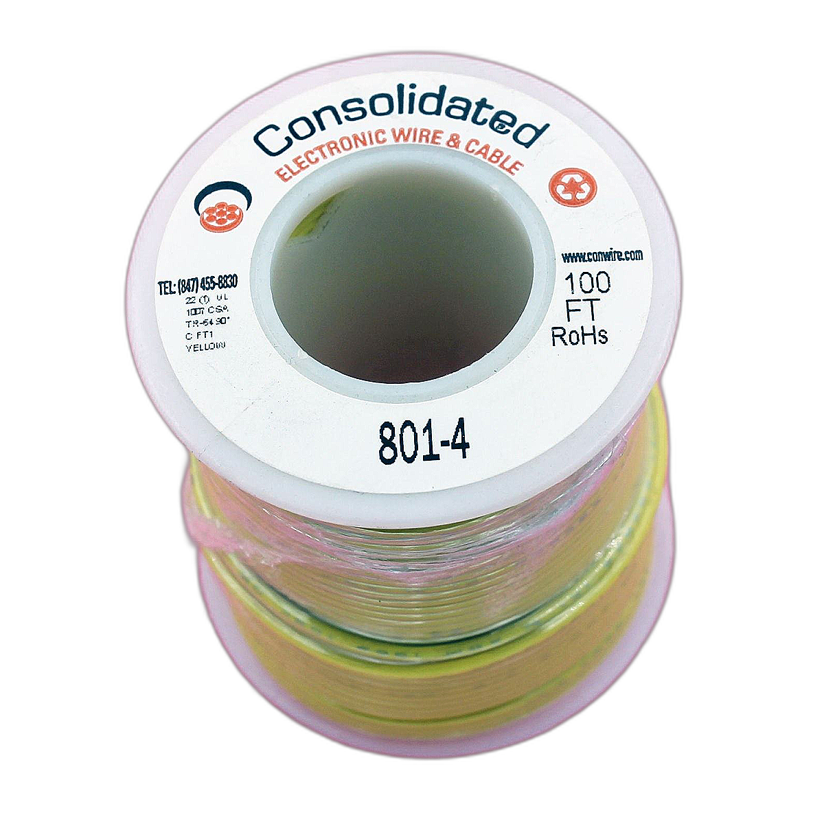 789048342531 Consolidated Wire 22 AWG (Gauge) Yellow Solid Hook-Up Wire 100 ft