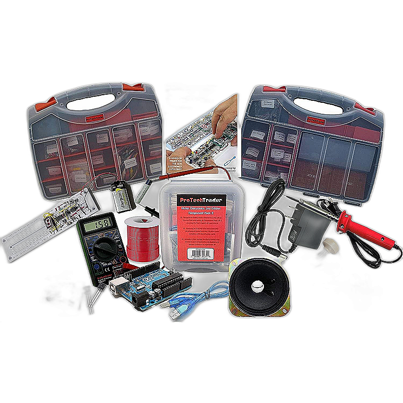 Check out our electronic component packs below which are designed to follow the educational electronics books by author Charles Platt. We have worked with the author to make sure our kits contain the correct parts you need for each experiment in the accompanying book, including the latest Make: Electronics Third Edition Electronics Kit & Make: Electronics Third Edition Paperback Book by Charles Platt.