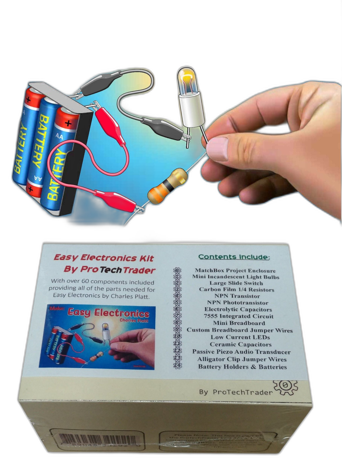 Product description: ProTechTrader 789048342913 Make: Easy Electronics Kit Bundle - Component Pack & Book by Charles Platt Make: Easy Electronics Kit Bundle - Component Pack &   Easy Electronics Component Kit & Book Bundle     Everyone has different reasons for seeking a better understanding of basic electronics.