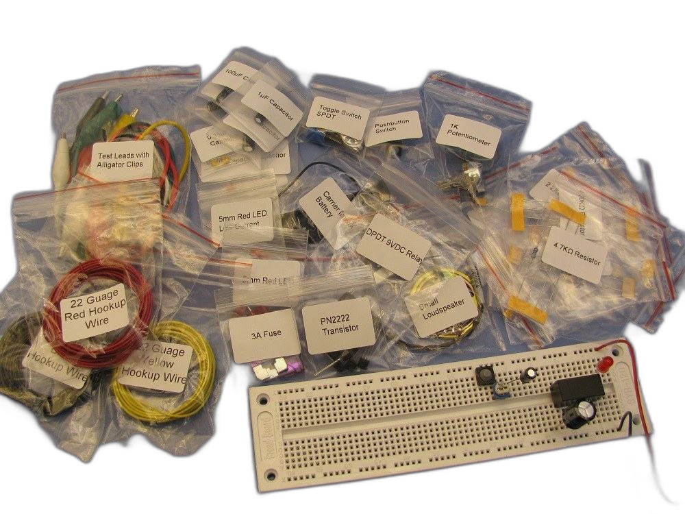 The kits literally include 100s and 100s of parts that are too long to list, but some highlights include: Resistors, Capacitors, Diodes, Transistors, Speakers, Soldering Iron, Solder, Breadboard, Printed Circuit Board, Integrated Circuits, Timers, Decade Counters, LEDs, Piezoelectric Element, Alkaline Batteries, Multimeter, Alligator clips, Test Leads, ATmega328P Microcontroller, Hook-up Wire, Antenna Wire, Tactile Switches, Relays, Fuses, Slide Switches, Toggle Switches, Potentiometers, Germanium Diode, and so much more!