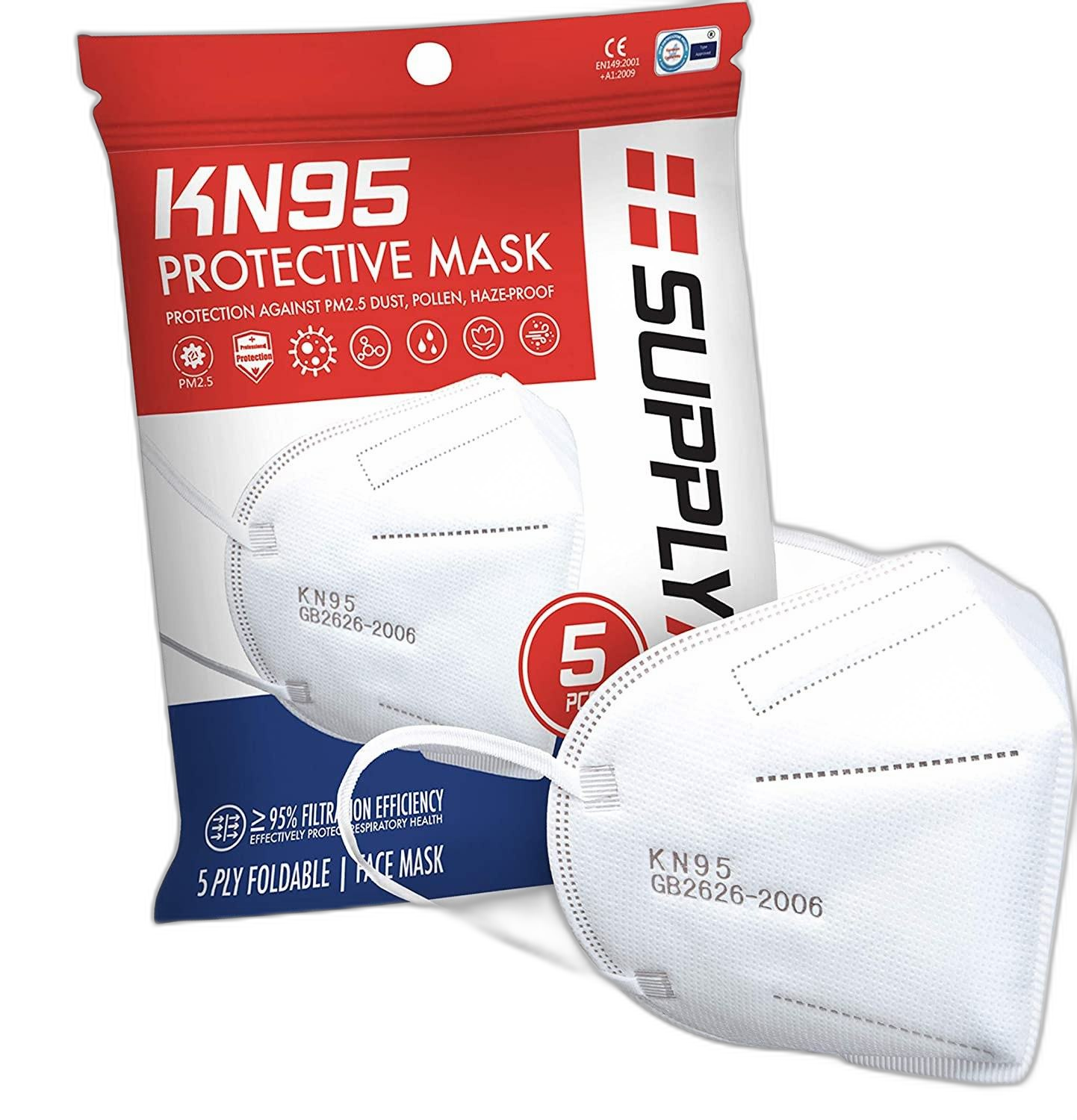 SupplyAID RRS-KN95-5PK KN95 Mask, Protection Against