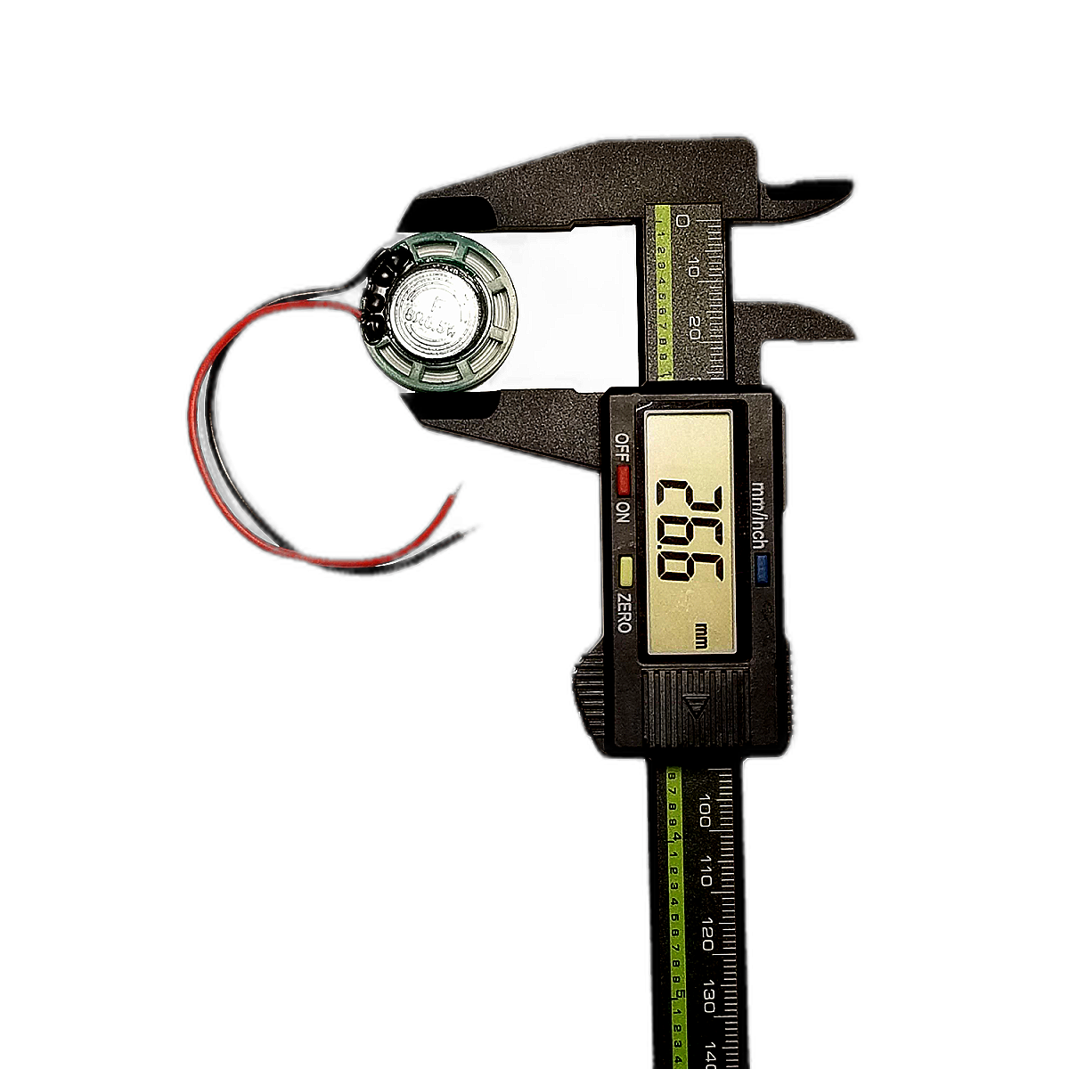 Loud Speaker 26mm 8 ohm 1/4 watt (0.25 w) Green Plastic ~4 in (104 mm) pre-soldered wire leads Loose Packaged - New from Factory |
