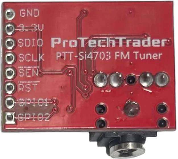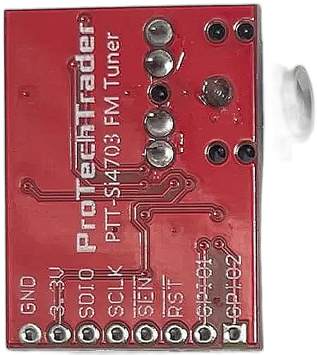 - ProTechTrader's Si4703 is Designed to be compatable replacement of the SparkFun FM Tuner Evaluation Board WRL-12938 V13 with matching pinout of GND 3.3V SDIO SCLK SENRST GP101 GP102 - Note: This matches the latest style (v13) with the 3.3v and GND pins switched compared to the older V11 SparkFun WRL-10663 breakout board