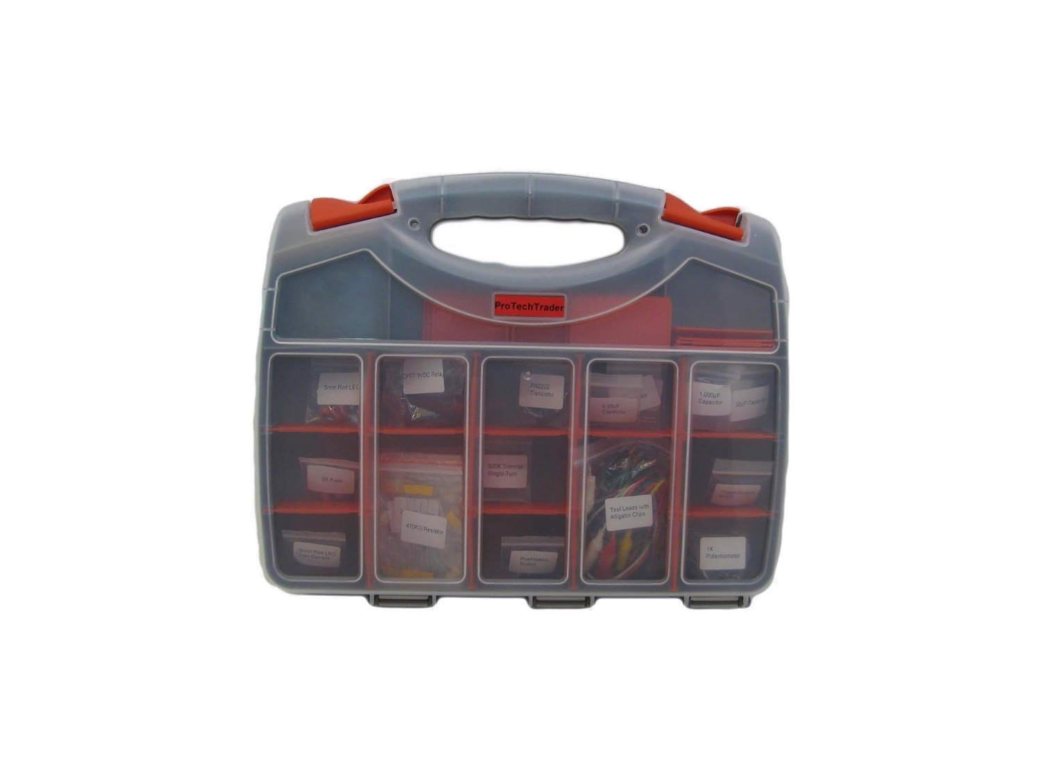 The ProTechTrader Make: Electronics Component Kit 1 has been designed to be used with the second edition of Charles Platt’s hands on learning book, Make: Electronics. Rounding up all of the necessary components can be time consuming and frustrating and we think learning electronics should be fun and exciting, so we’ve created the ideal component kit for experiments 1-11. The component shopping has been done so you can hit the ground running. You can rely on the ProTechTrader Component Pack 1 to supply you with the necessary components you’ll need for chapters 1 & 2 which cover experiments 1 - 11 of the Amazon.com Best Seller Make: Electronics: Learning Through Discovery 2nd Edition by Charles Platt and all are housed in a durable easy to carry double-sided plastic organizer. Each of the components are clearly labeled for easy access.