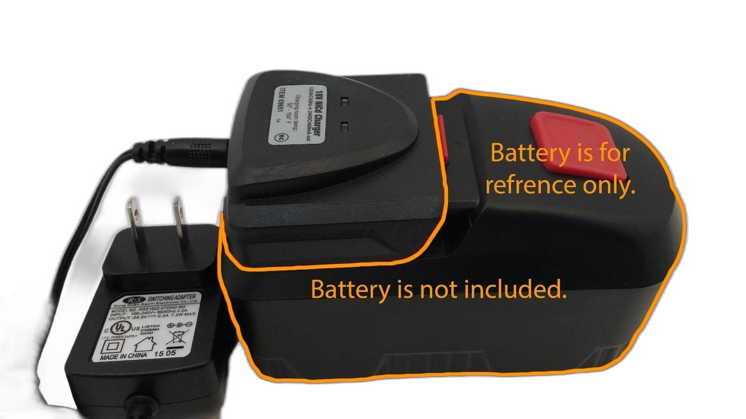 Will charge 18V battery for Drill Master drills, flashlights, saws, & more.